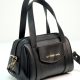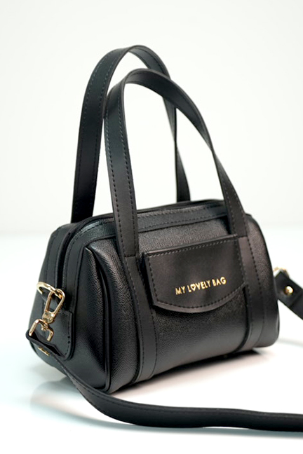 Torba zaobljenoga dizajna s kratkim ručkicama i dodatnim dugim remenom za nošenje preko tijela s ukrasnim džepićem na licu torbe.