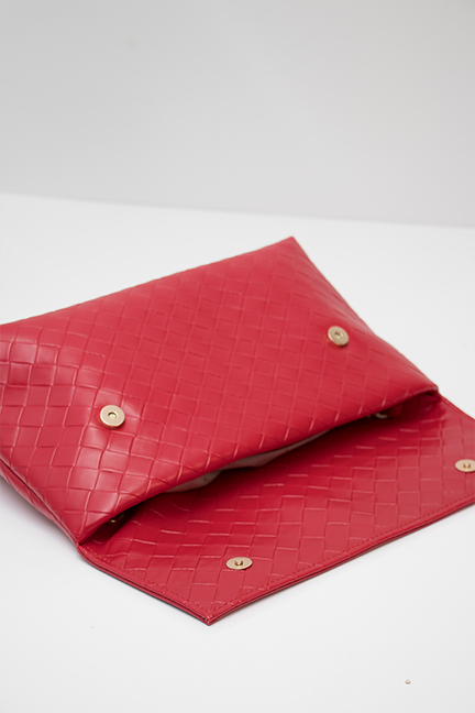 Minimalistička i sofisticirana clutch torba izrađena od kvalitetnog materijala s reljefnom, pletenom teksturom koja daje dojam luksuza i dubine. Savršen je izbor za večernje izlaske, posebne prilike ili kao statement dodatak dnevnom outfitu.