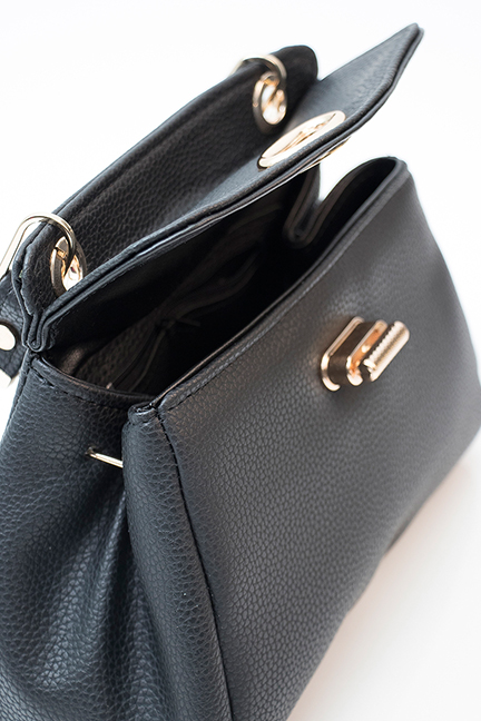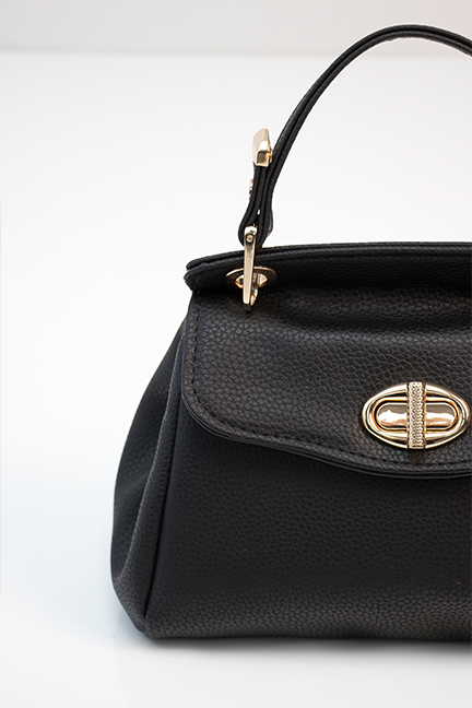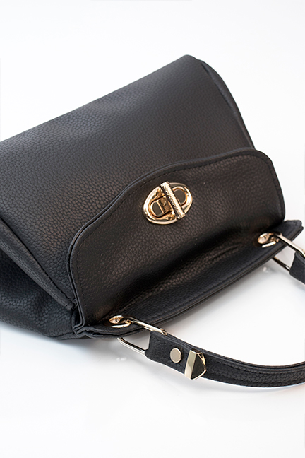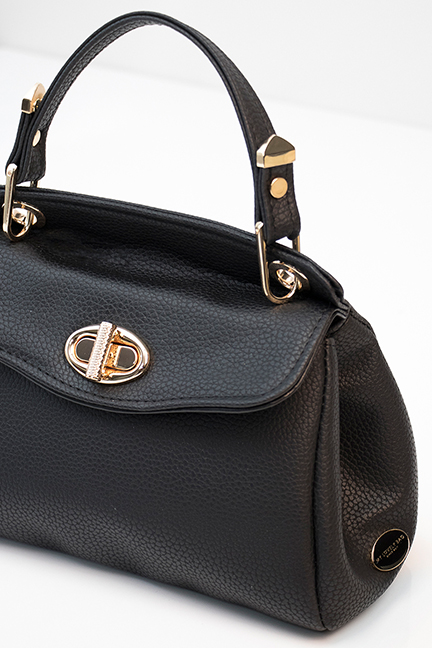 Elegantna torba blago trapezastog oblika vrećaste forme s ručkicom i efektnom kopčom.