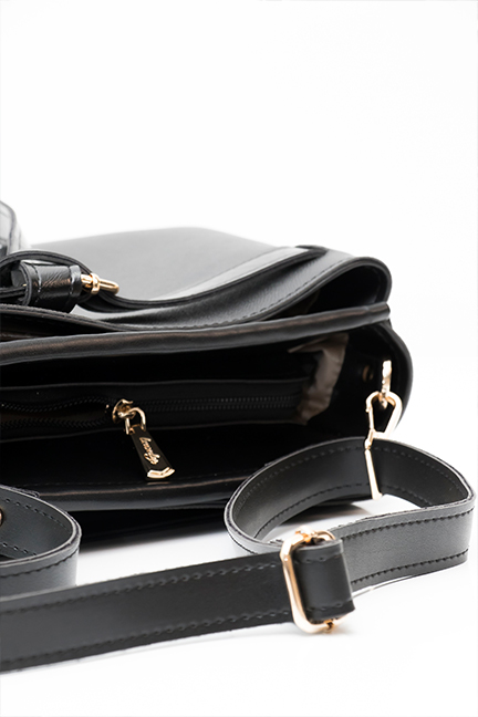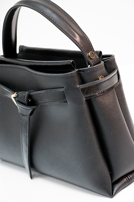 Elegantna torba poslovnog karaktera, blago trapezasta i minimalističkog dizajna s ukrasnim remenom.