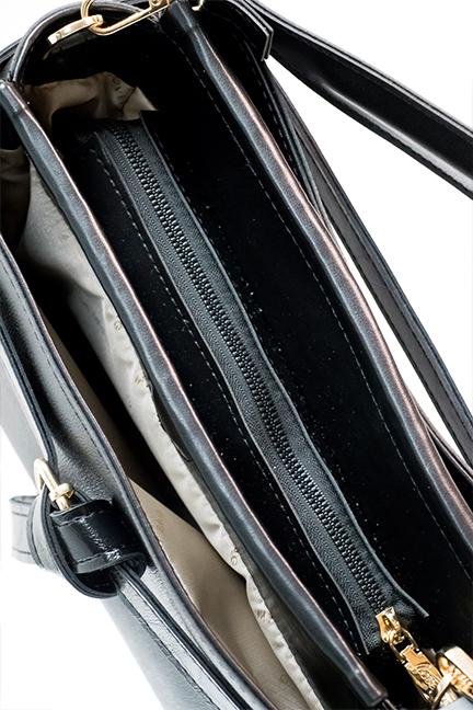 Torba model SEVILLA MAXI / POD. TEKS. CRNO t. + POD. LAK CRNO d. / ZLATO