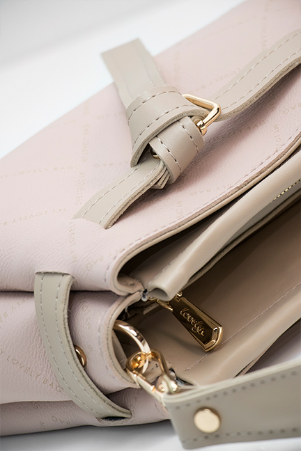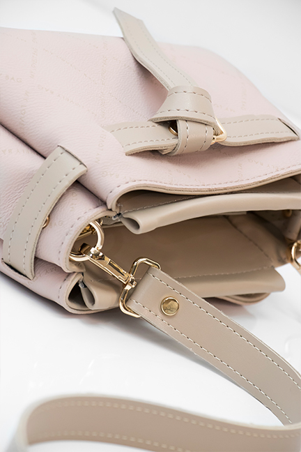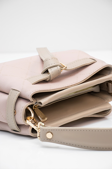 Blago trapezasta torba minimalističkog dizajna sastavljena od tri praktične pregrade. Ima ručkicu za nošenje u ruci te dugi podesivi remen za nošenje preko tijela ili na ramenu.